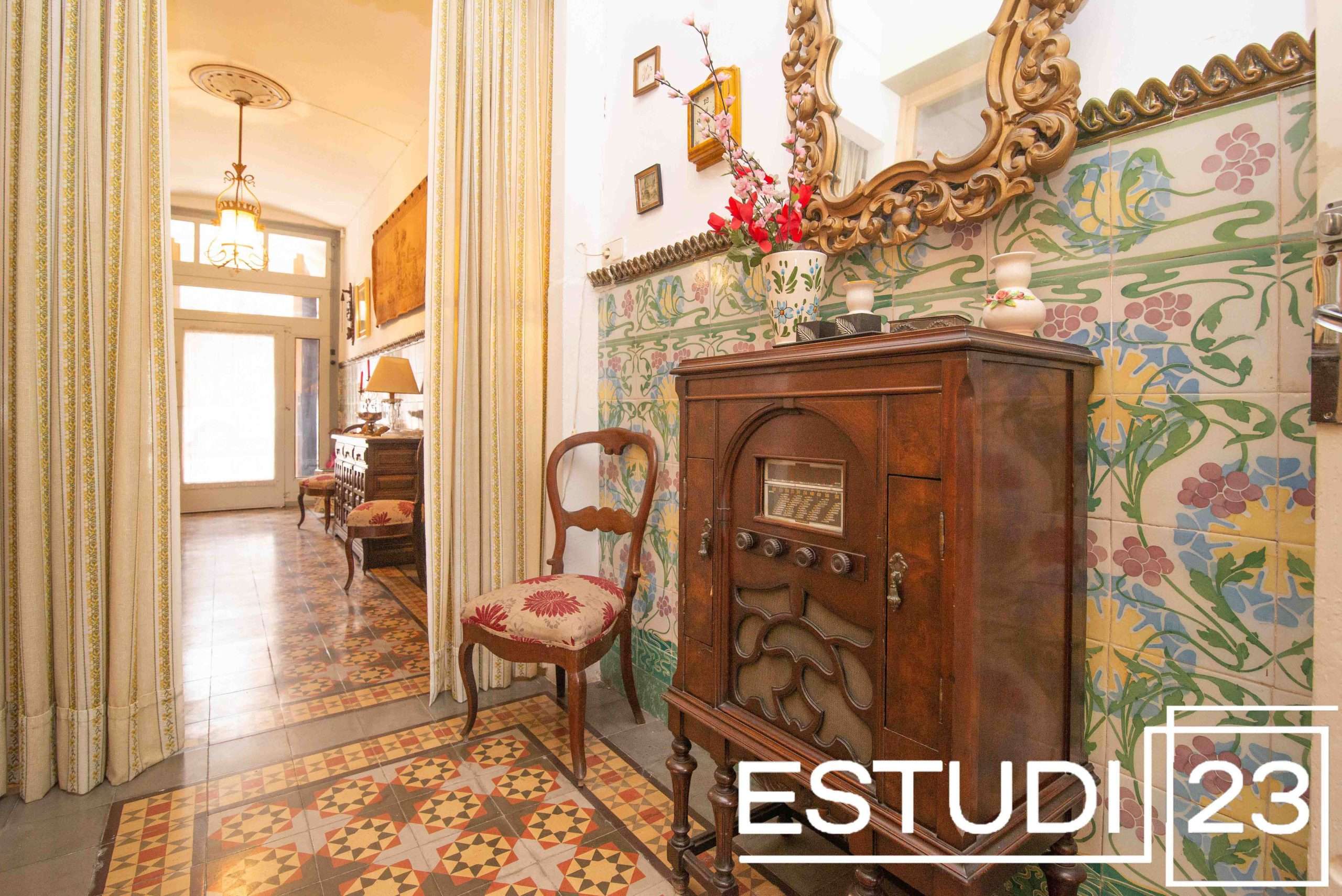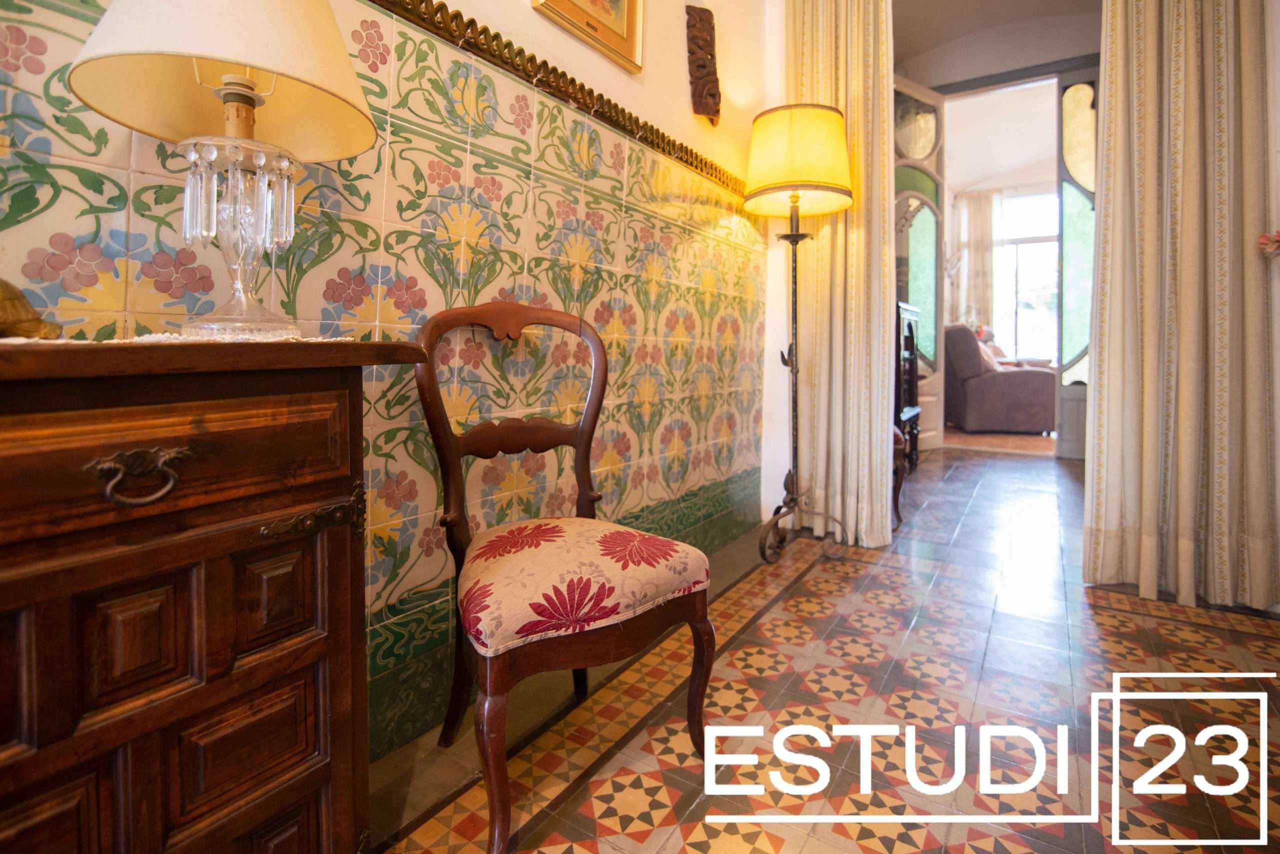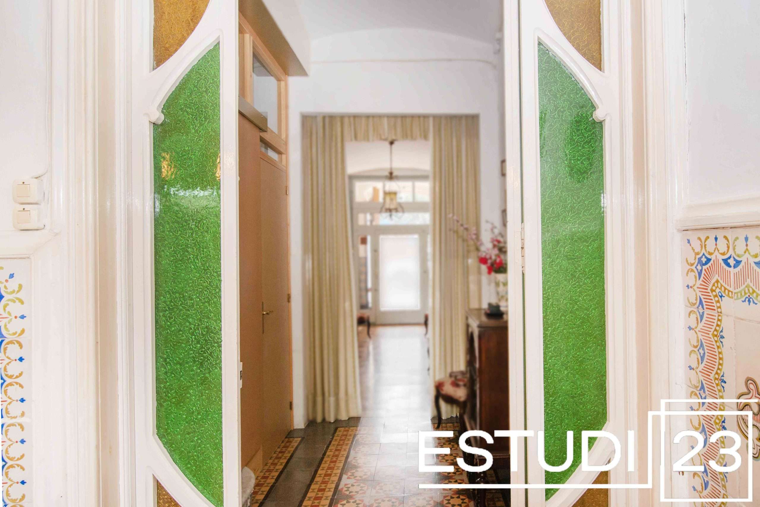 Una casa que conserva unos preciosos detalles modernistas, suelos hidráulicos, sus puertas altas, vitrinas, azulejos, el lavamanos de piedra del jardín, todos ellos únicos.