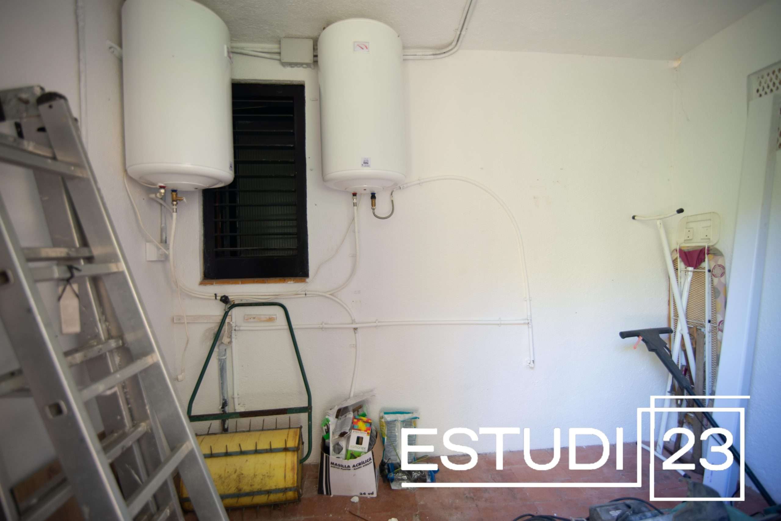 Dispone de un almacén para herramientas de jardín y un garaje cerrado para un vehículo de no mucha altura.